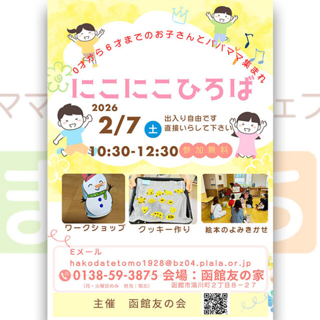 2026年2月7日(土)【にこにこひろば】親子で一緒にクッキーづくりやワークショップなどで楽しみ…