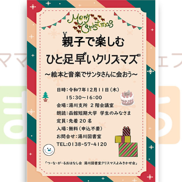 2025年12月11日(木)【親子で楽しむ ひと足早いクリスマス】が開催されます♪絵本と音楽でサンタさんに会おう♪