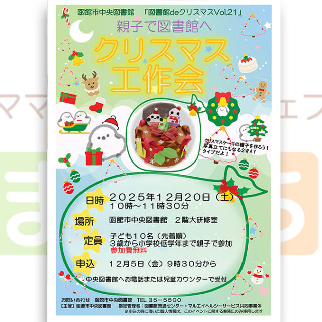2025年12月20日(土)【親子で図書館へ クリスマス工作会】が開催されます♪クリスマスケーキの帽子を作ろう!