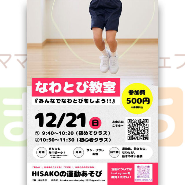 2025年12月21日(日)【なわとび教室】が開催されます♪HISAKOの運動あそびによる楽しいレッスンです♪