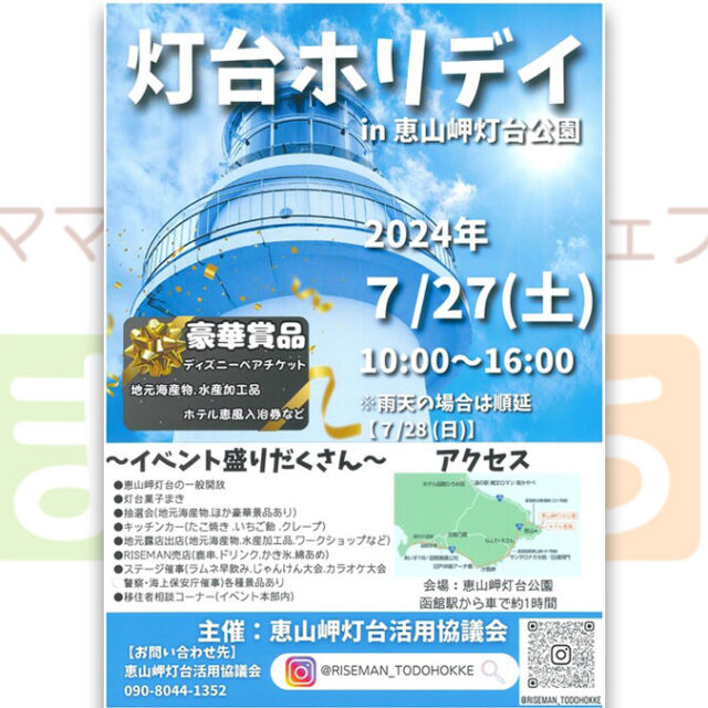 イベント 灯台ホリデイin恵山岬灯台公園 7月27日(土) 2024年7月27日(土)【灯台ホリデイin恵山岬灯台公園】が開催されます♪ おやこキッズショッピング食べる 2024.07.24 おやこイベントキッズ