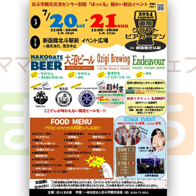 イベント 2024 SUMMER 道南クラフトビアガーデン in 新函館北斗駅 7月20日(土)~7月21日(日) 7/20(土)・7/21(日)【道南クラフトビアガーデン】ビールにぴったりなグルメやステージイベントが満載! おやこ食べる 2024.07.19 おやこイベント