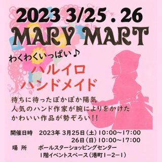 イベント MARY MART 3月25日(土)~3月26日(日) 2023年3月25日(土)26日(日)【MARY MART】人気のハンドメイド作家さんによるショップ・ワークショップのイベントです♪ おやこキッズショッピング体験 2023.03.22 おやこイベントキッズ