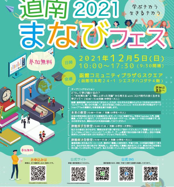 イベント 道南まなびフェス 2021 12月5日(日) 12月5日(日)函館コミュニティプラザGスクエアで開催の【道南20217まなびフェス】をご紹介♪ おやこキッズパパママ学ぶ 2021.11.22 おやこイベントキッズパパママ