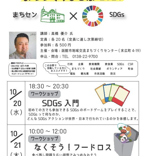 イベント まちづくりひろば 2021(まちセン×SDGs) 10月20日(水)~10月21日(木) 2021年10月20日・21日【まちづくりひろば 2021(まちセン×SDGs)】が開催されます。ワークショップ形式の講座で、楽しみながらまちづくりを学びませんか? パパママ 2021.10.15 イベントパパママ
