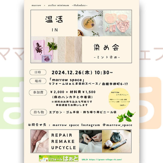 イベント 温活 IN 染め会-ミント染め- 12月26日(木) 2024年12月26日(木)【温活 IN 染め会-ミント染め-】が開催されます♪ プレママママ体験 2024.12.09 イベントプレママママ
