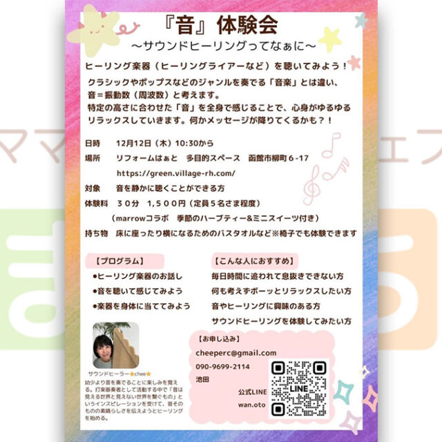 イベント 『音』体験会 12月12日(木) 2024年12月12日(木)【『音』体験会】が開催されます♪ヒーリング楽器(ヒーリングライアーなど)の音色を聴いてみよう! プレママママ体験 2024.12.09 イベントプレママママ