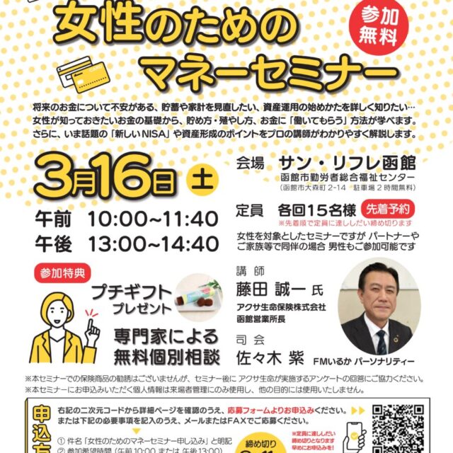 イベント 新NISA&資産形成を学ぶ 女性のためのマネーセミナー 3月16日(土) 2024年3月16日(土)【新NISA&資産形成を学ぶ 女性のためのマネーセミナー】女性が知っておきたいお金の基礎から、貯め方・殖やし方、お金に「働いてもらう」方法が学べます。 プレママママ学ぶ 2024.02.27 イベントプレママママ