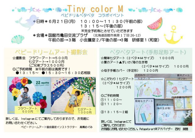 ベビードリームアート協会認定インストラクターとペタペタアート アドバイザーのコラボイベント『Tiny color M』です!