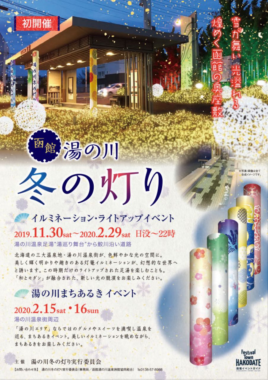北海道の三大温泉地・湯の川温泉街が、色鮮やかな光の空間に。