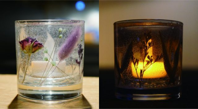お気に入りのボタニカル素材を選んで、ゆらめく光できらきら輝くジェルランタンを作りましょう。秋の夜長・読書のおともにいかがでしょうか。※デリケートな花材・ガラス製品を扱います