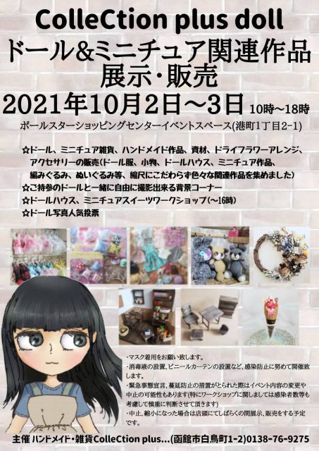 ※中止・縮小になった場合は店頭(ハンドメイド・雑貨ColleCtion plus)にて、しばらくの間展示、販売をする予定です。