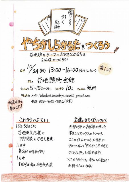 きらく荘に住む大学生主催で、谷地頭をテーマに「やちがしらかるた」を作るプロジェクトが始動しました✨
