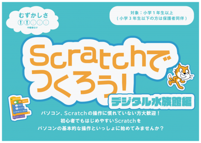 今回は色んな種類のお魚が泳ぐデジタル水族館を作ります!Scratch経験者推奨