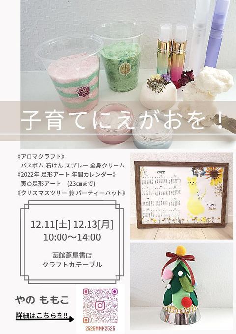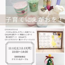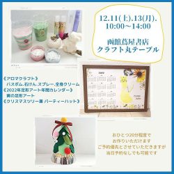 12月11日(土)13日(月)の2日間、函館蔦屋書店でクリスマス・お正月用の手作りワークショップが開催されます。どれも、お1つ20分程度でお作りいただけますよ(*^^*)