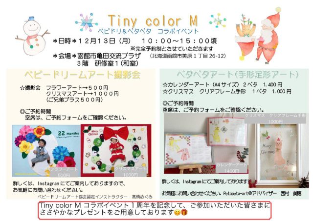 ベビードリームアート&ペタペタアートのコラボイベントTiny color Mです!1周年を迎えました、Tiny color Mです☺️