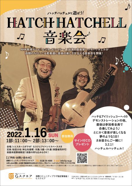 NHK教育テレビ「ムジカピッコリーノ」出演の音楽家 ハッチハッチェルがGスクエアにやってくる♪