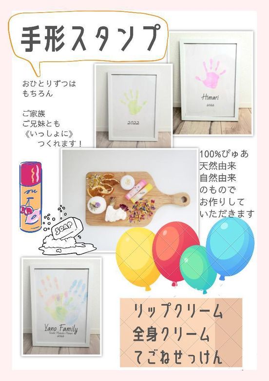 今年最初の手形スタンプは1年間飾れるように、記録や思い出として残せるように西暦入りです!ご予約いただけると「ネーム」「ファミリーネーム」をお入れして作ることもできますよ♪家族、兄妹、おひとりずつ、他