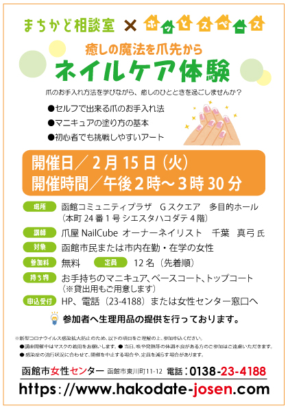 今回は函館コミュニティプラザGスクエアで開催の出張相談【まちかど相談室】と同時開催です♪参加者へ生理用品の提供を行っています。