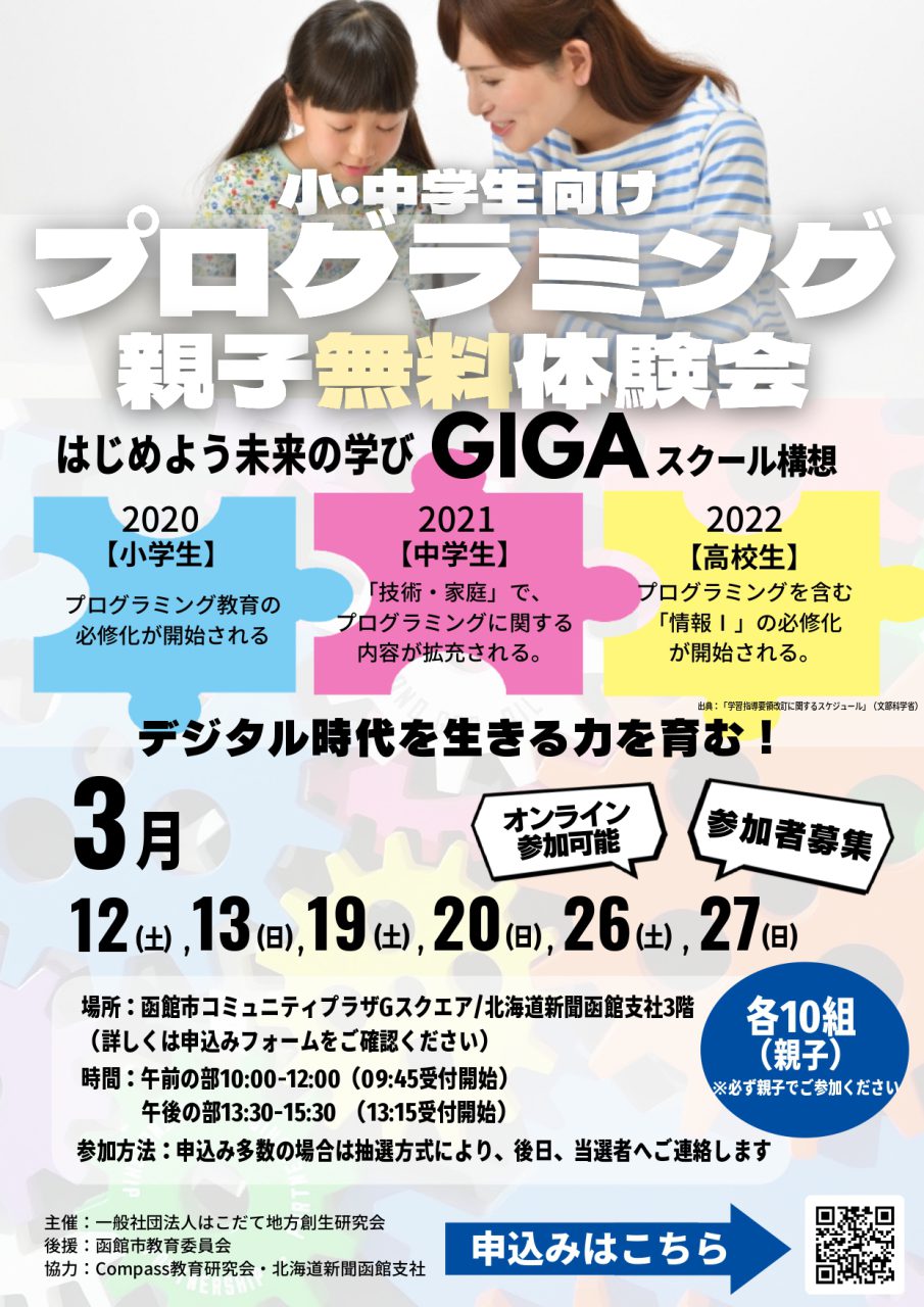 デジタル時代を生きる力を育むためにもプログラミングを「親子」で!楽しみませんか!