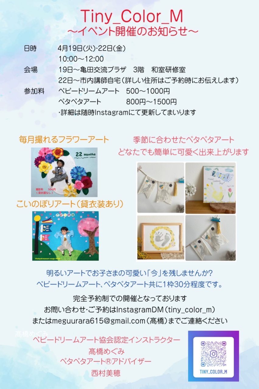 ベビードリームアート&ペタペタアートのコラボイベントTiny color Mです!