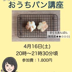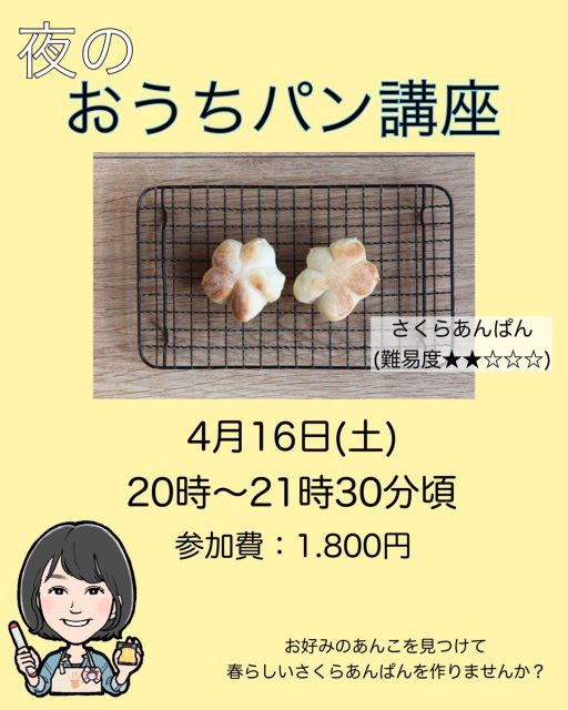持ち物 筆記用具、エプロン、手を拭くタオル、飲み物(必要な方)、保冷バックと凍らせた保冷剤(講座内で作った生地とあんこをお持ち帰りいただけきます)