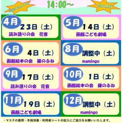今回は、『銀のふね』さんによる読み聞かせです。入場は無料! ぜひお越しください。
