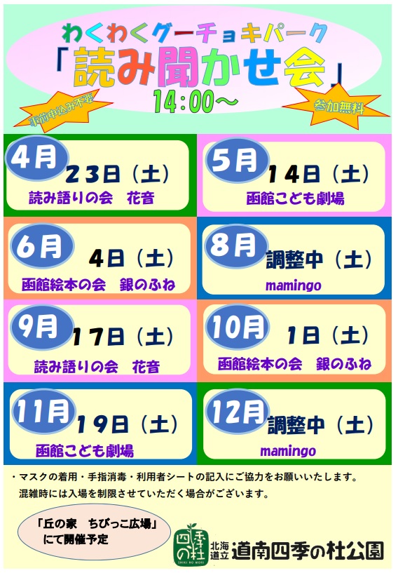 丘の家ちびっこ広場におきまして、わくわくグーチョキパーク『読み聞かせ会』を開催いたします!