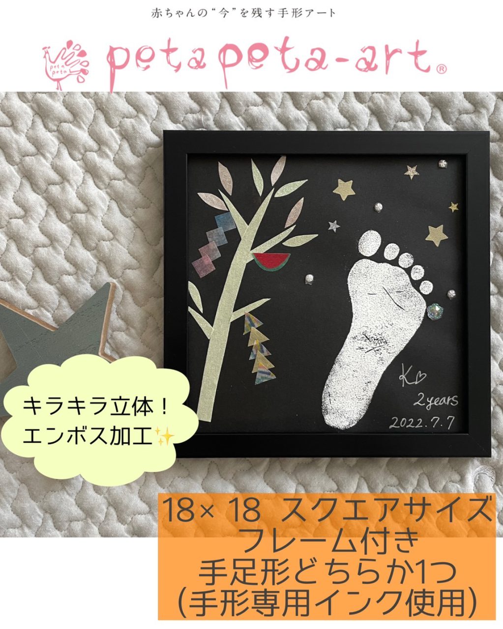 手形専用のインクで手足形を押した後に、講師がキラキラ立体加工を致します!