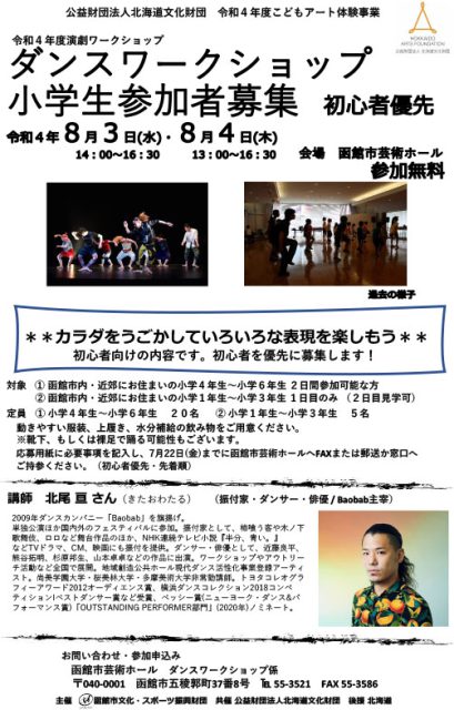 ダンスワークショップ 小学生参加者募集(初心者優先)