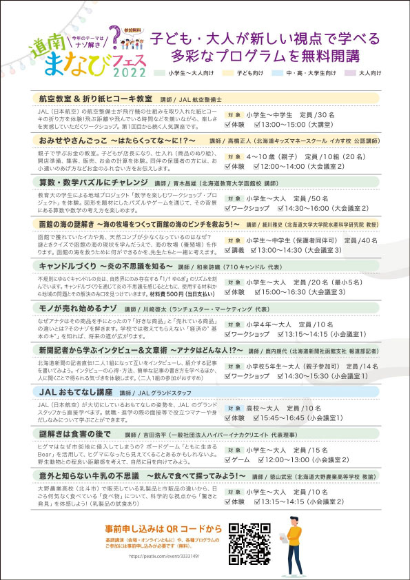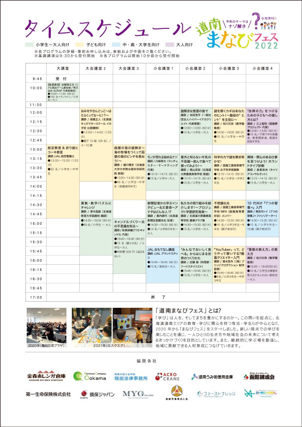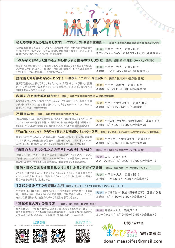 定員 各プログラムによって異なります。下記チラシリンクからタイムスケジュールをご確認ください