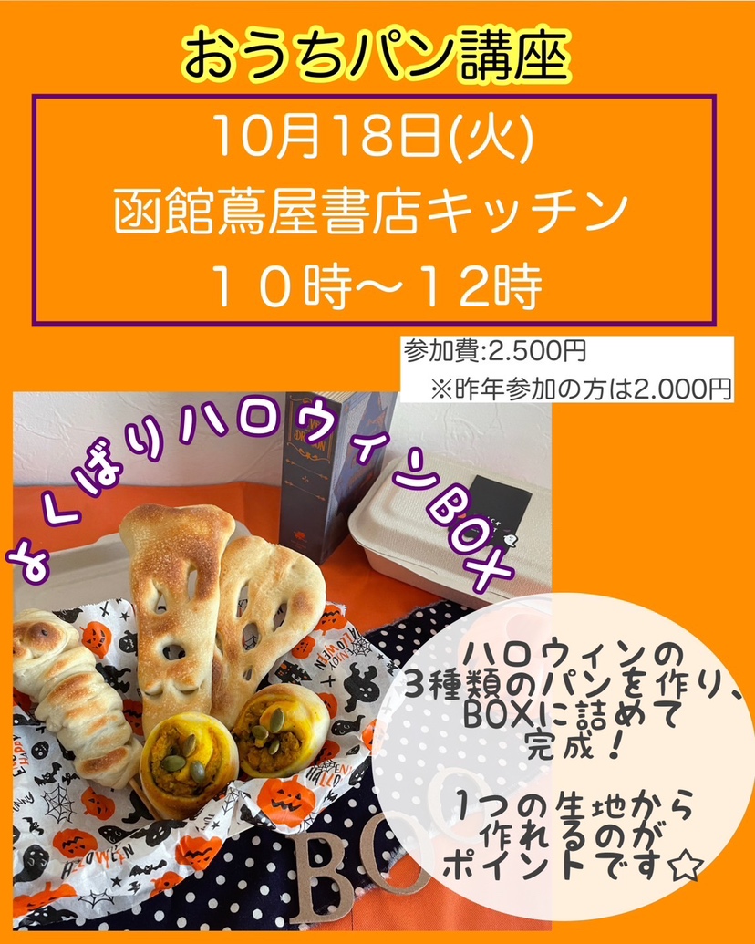 参加料 2,500円(レシピ、ハロウィンBOX、持ち帰り生地込み)