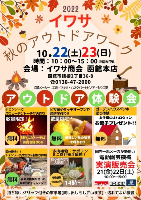 イワサ 秋のアウトドアワーク アウトドア体験会