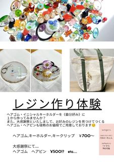 レジンのカケラから選んでヘアピンが¥500で作れちゃう!?ご予約も承ります!みなさまにお会いできること楽しみにしております😊