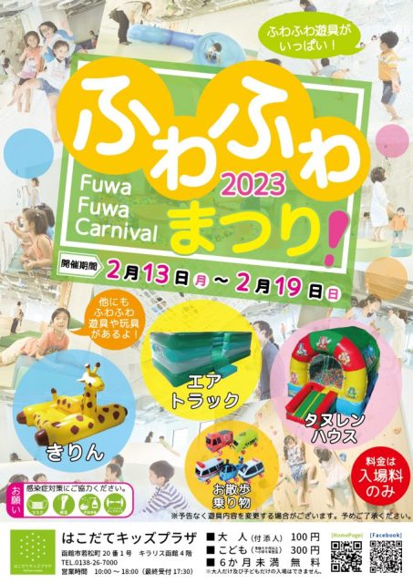 はこだてキッズプラザの『ふわふわまつり!』が遂に復活です!常設のエアトラックやキッズの森に加え、