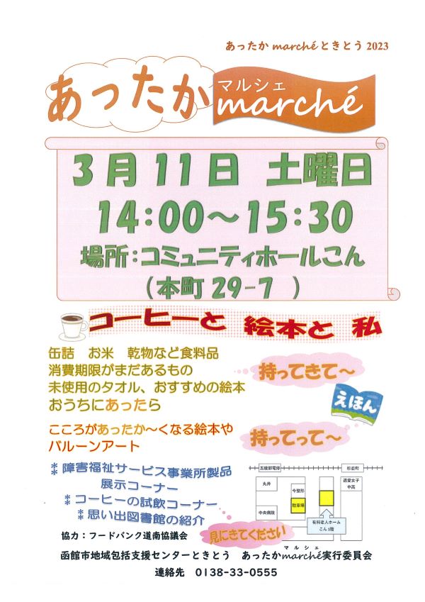 その他にも、コーヒーの香りただよう試飲コーナー、「思い出図書館」などこころがあったか~くなるイベントをめざします。