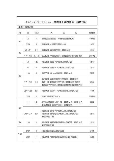 2023年度道南陸上競技協会競技の日程一覧もぜひご参考ください。