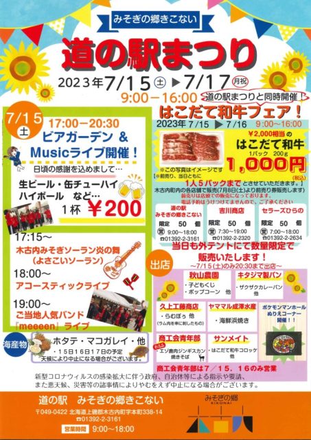みそぎの郷きこない 道の駅まつり イベント 2023.07.07 2023年7月15日(土)~2023年7月17日(月) 開催場所 道の駅 みそぎの郷きこない 15日は20時半まで「ビアガーデン&Musicライブ」を開催! なんと生ビール、缶チューハイ、ハイボールなどが1杯200円!!! ジュースもありますよ♪ 可愛い子どもたちによるよさこいや、バンド演奏などライブも開催♪ 新鮮な海産物の販売など、家族で楽しめる催しです(^^)/ 時間 9:00~16:00 生ビールが200円だなんて!!!!とっても魅力的!!!! ※このイベントは終了しました※