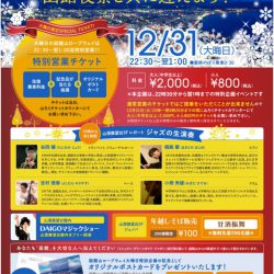 山頂展望台では甘酒の振舞(無料先着500名様)や、年越しそばの販売(限定200食100円)の他、23時からはジャズの生演奏やマジックショー(フリー回遊)が行われます。