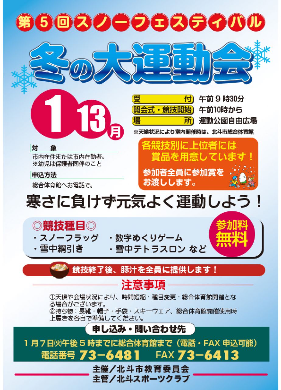 ・スノーフラッグ・数字めくりゲーム・雪中綱引き・雪中トラスロンなど