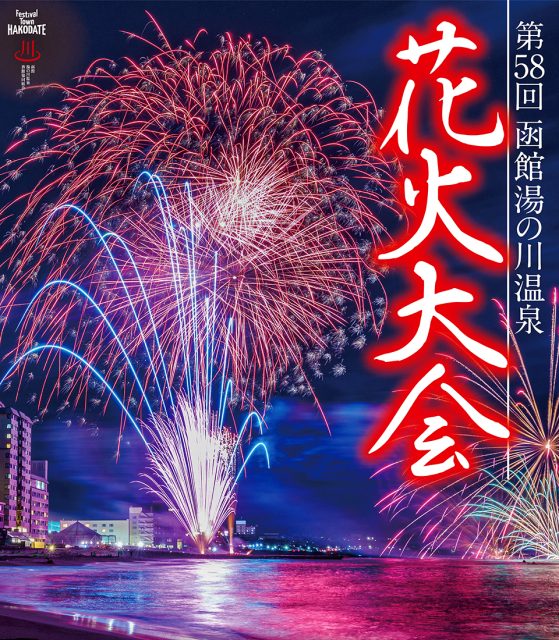 花火は松倉川の下流付近から打ち上げられ、津軽海峡沖に浮かぶイカ釣り漁船の漁火(いさりび)と共に、晩夏の夜空を彩ります。