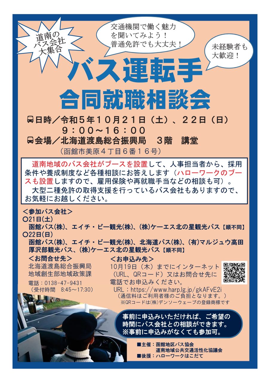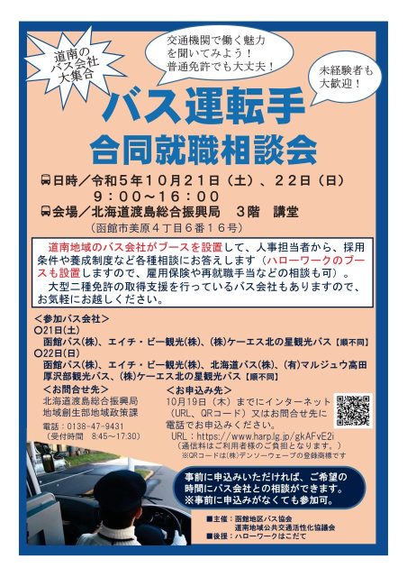 道南地域のバス会社がブースを設置して人事担当者から採用条件や養成制度など各種相談にお答えします。