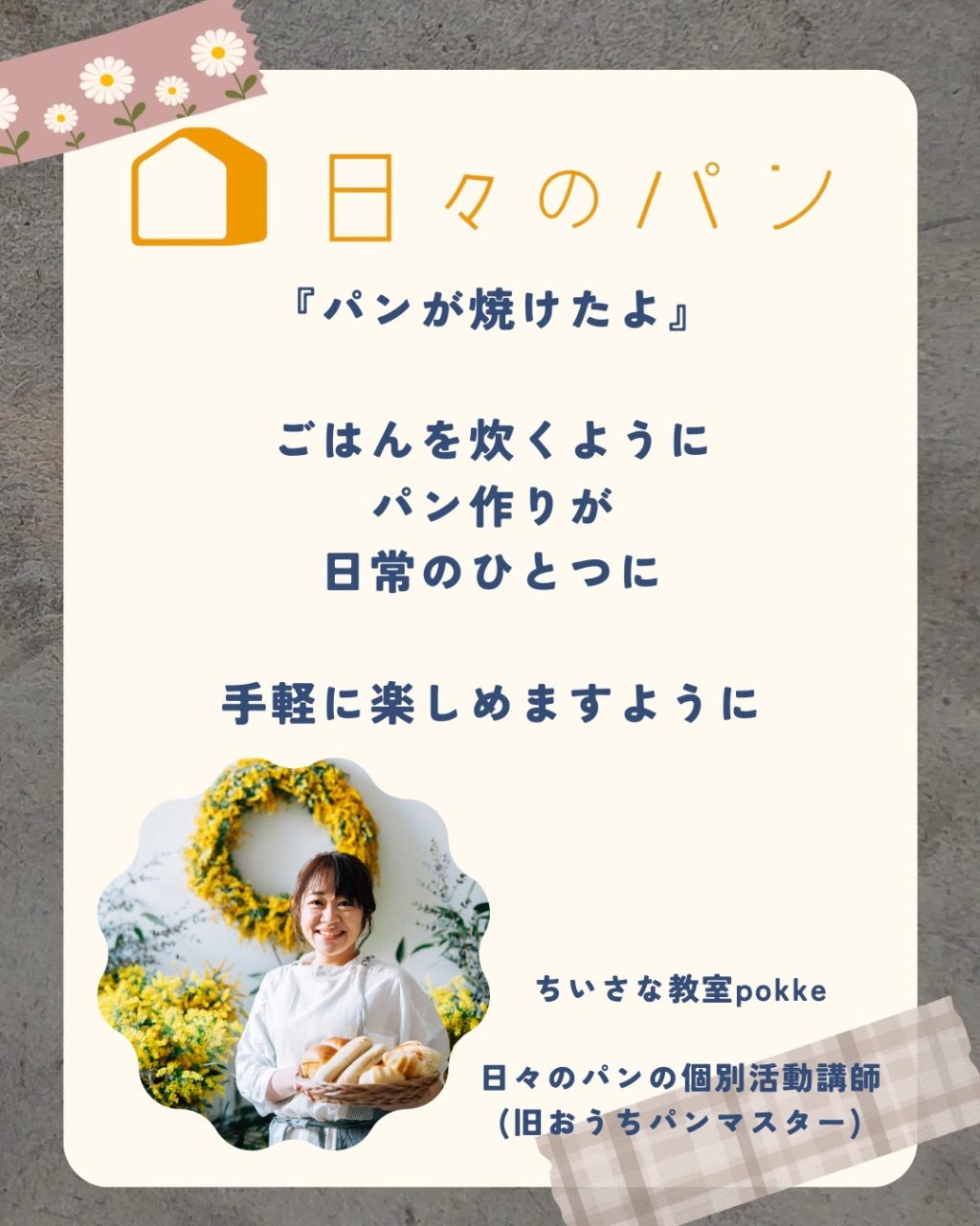 代表の吉永麻衣子先生が一人でも多くの方に手軽にパン作りを楽しんでほしいという想いから活動をしております。