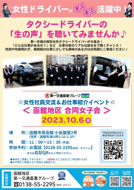 【函館地区 合同女子会】タクシードライバーの「生の声」を聴いてみませんか♪