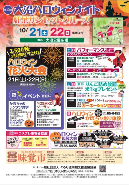 花火が打ちあがるので大沼ならではの景色とハロウィンの