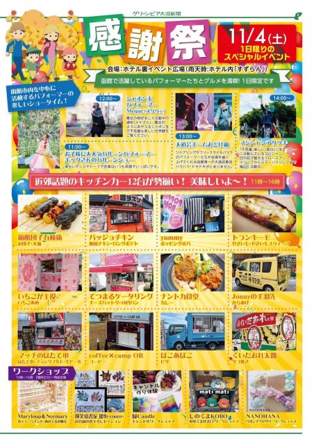 その他にもビンゴ大会や、お得な温泉入浴回数券の販売(数量限定)など盛りだくさん♪