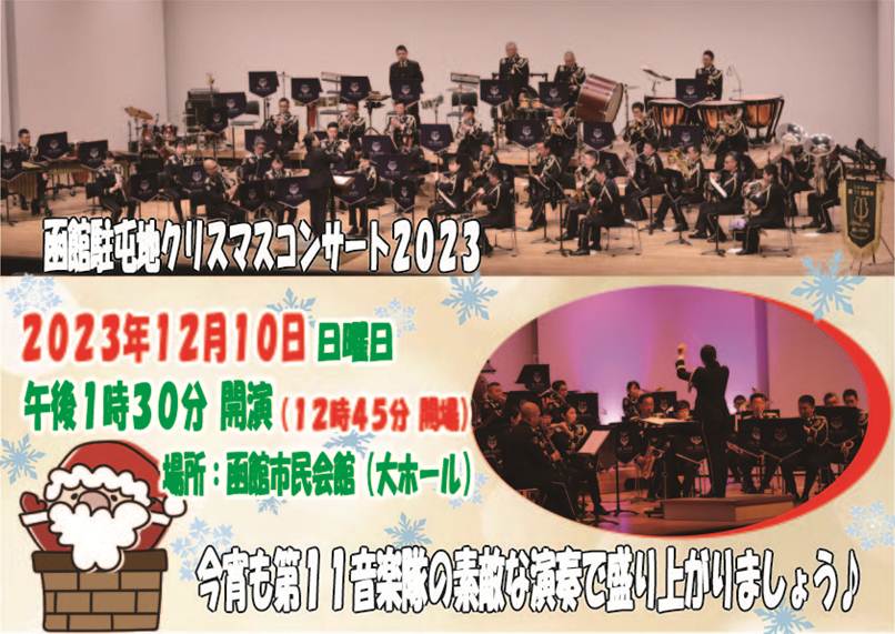 陸上自衛隊函館駐屯地によるクリスマスコンサートが今年も開催されます♪