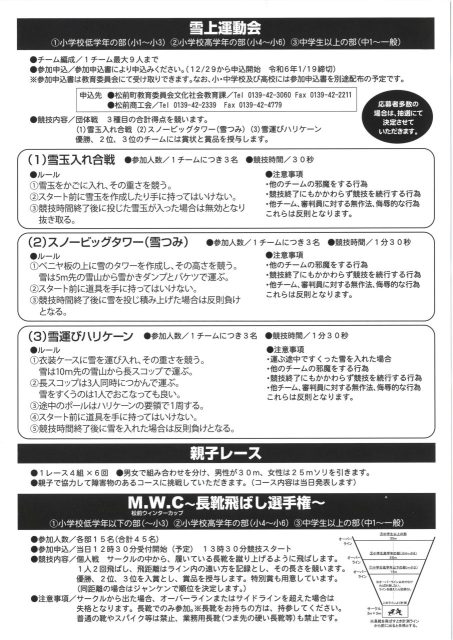 ※「雪上運動会」は事前申し込みが必要です(1/19にて受付終了)。
