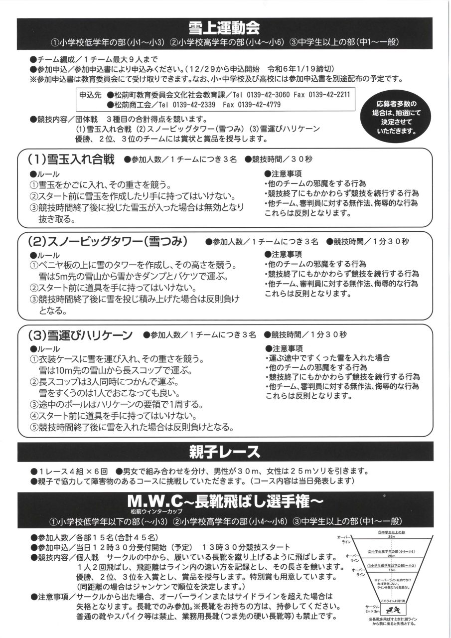 ※「親子レース」「松前ウインターカップ」は当日エントリー受付可能です。