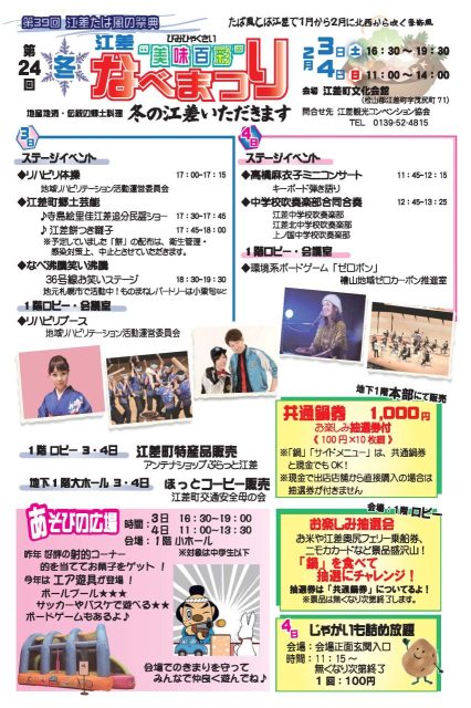 バラエティー豊かな創作鍋と江差自慢の鍋を堪能できるイベントです。